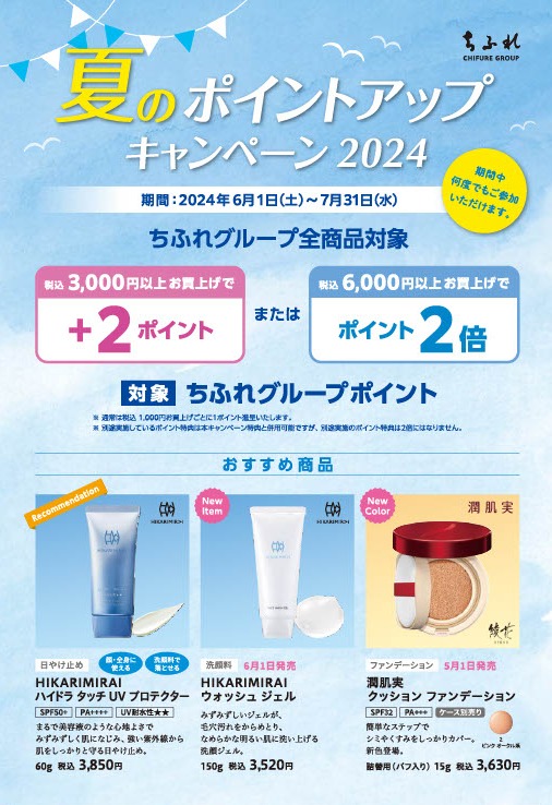 只今、夏のポイントアップキャンペーンを実施しております。